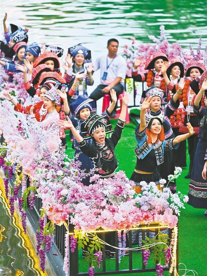 5月1日,富宁县“陇端·坡芽情歌”文化旅游活动启幕。当地挖掘坡芽歌书等非遗资源,丰富多彩的民族文化吸引游客前来体验。刘瑞摄(中经视觉)